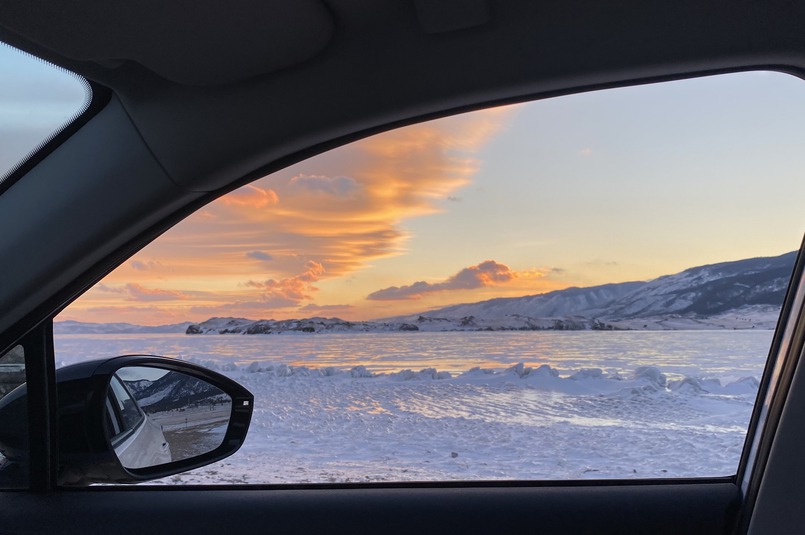 Ближе к обеду мы направились в сторону Иркутска, заехали напоследок покататься на коньках и попрощаться с Байкалом. Трасса была практически пустая, и мы долетели до города за два с половиной часа! При этом высокая скорость абсолютно не чувствуется, очень комфортно.